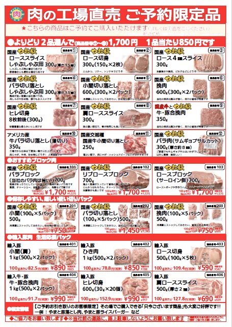 | 輸入豚挽肉500g×2P | ¥850(税込) | セット |